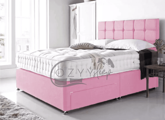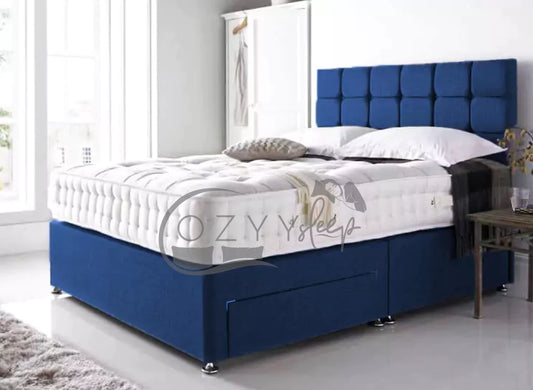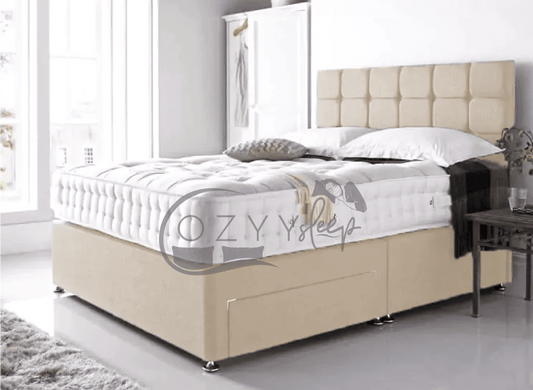 Cozyysleep Discover our Storage Linen Divan Beds with Headboard 20″ |Coolblue memory foam spring Mattress 10″| storage (2 Drawer)