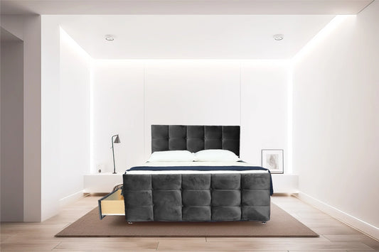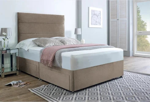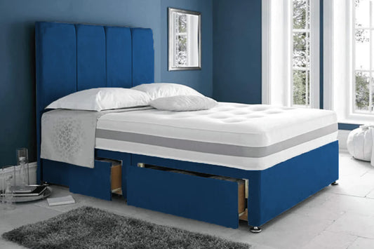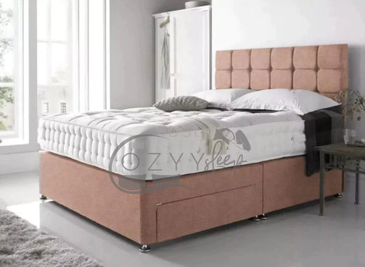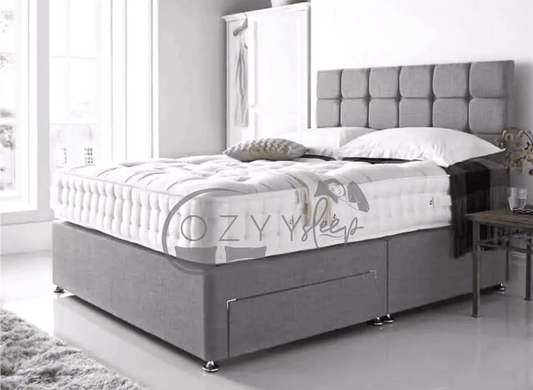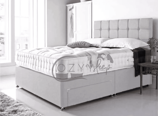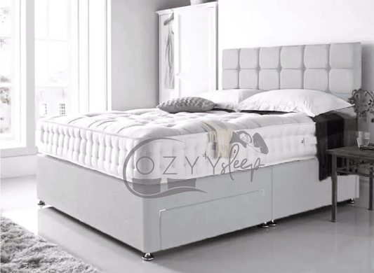 Cozyysleep Royal Suede Grey Divan Bed Set With Headboard 20″ |Coolblue memory foam spring Mattress 10″| storage (2 Drawer)