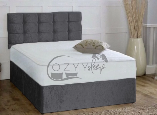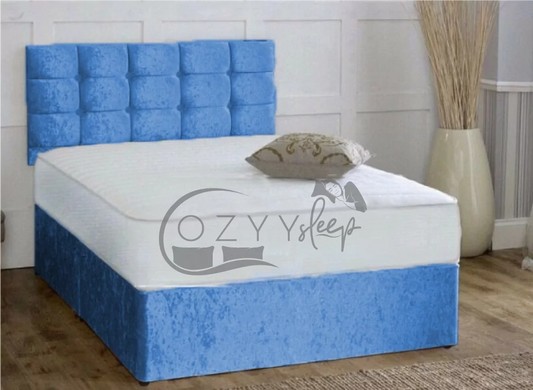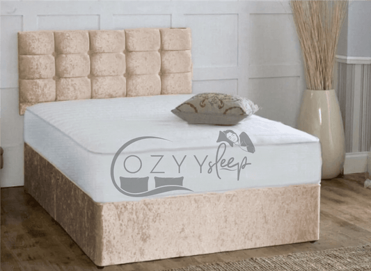 Cozyysleep Cream Crushed Velvet Single Divan Bed with Headboard 20″ | Coolblue memory foam spring Mattress 10″ | storage (2 Drawer)